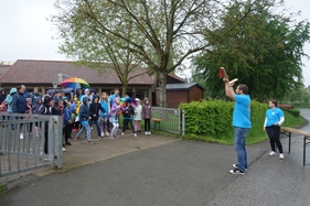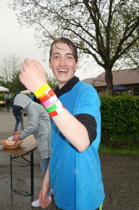 Ein großes Highlight war es, das die Läufer*innen pro erlaufener Runde am Start mit bunten Armbändern belohnt wurden. Am Ende des Vormittags gab es sehr viele bunte Arme zu sehen. Die Schüler*innen präsentierten sehr stolz ihre Armbänder, die als Regenbogen leuchteten.