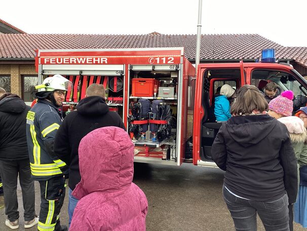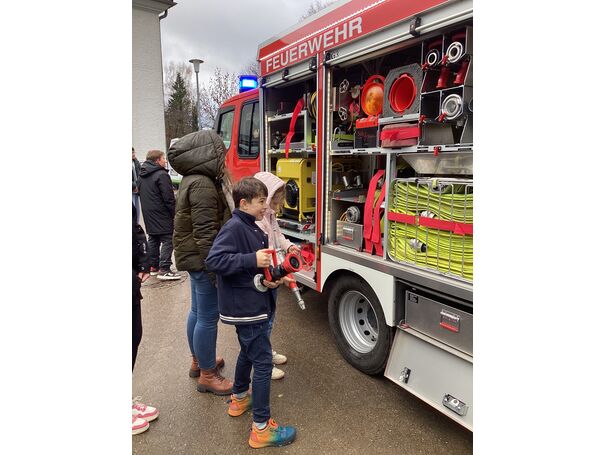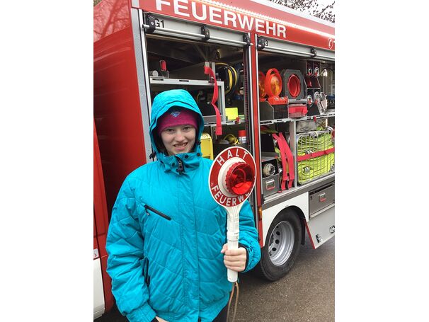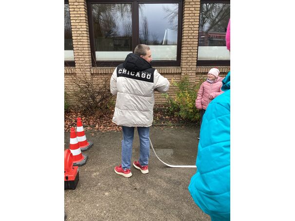 Während wir dort warteten kamen ein paar Mitglieder der freiwilligen Feuerwehr aus Eversen mit einem echten Feuerwehrauto. Das durften wir nach der Übung anschauen und uns sogar reinsetzen. Außerdem durften wir den Feuerwehrleuten Fragen stellen und das Löschen mit Wasser ausprobieren.