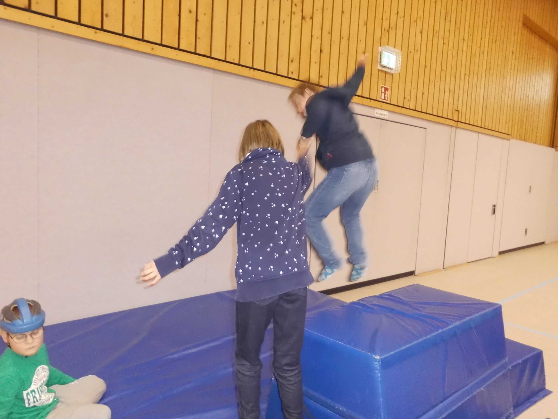 In der Motorik AG gehen wir zusammen in und um Eversen wandern. Dabei ist es fast egal, wie das Wetter ist. Manchmal besuchen wir einen Bauernhof oder gehen zum Spielplatz. Wenn es Draußen doch mal ganz schlecht ist, dann nutzen wir auch die Turnhalle. Dort spielen und klettern wir oder springen Trampolin.