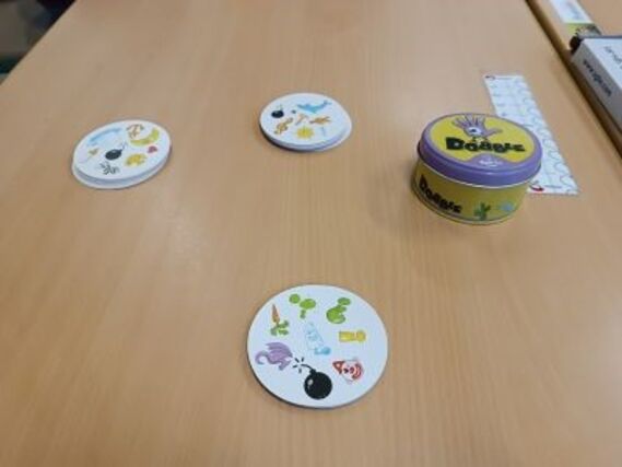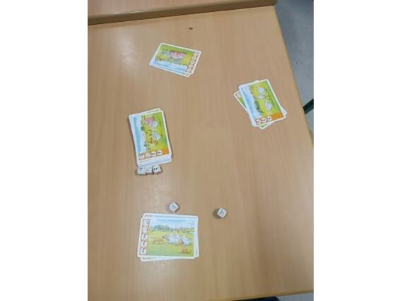 In der Spiele AG sind wir 10 Kinder. Gemeinsam entdecken wir die Welt der Spiele und können viel ausprobieren. Klassiker wie Mensch-Ärgere-Dich-Nicht, Memory, Leiterspiel, aber auch Kuh & Co, Dobble und Gruselino machen uns viel Spaß.