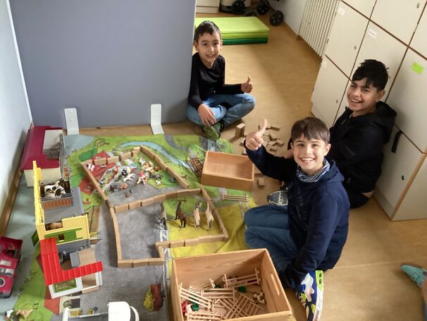 Gemeinsam spielen macht uns am meisten Spaß. Und wenn es mal Krach gibt, besprechen wir das in unserer Klassenkonferenz.
